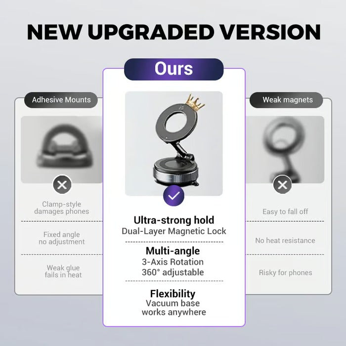 - Support de téléphone portable ajustable à 360° amélioré : Le support magnétique amélioré offre une rotation à 360°. En mode paysage ou portrait, il s’ajuste facilement pour trouver l’angle idéal. Profitez d’une navigation et de communications mains libres inédites.
